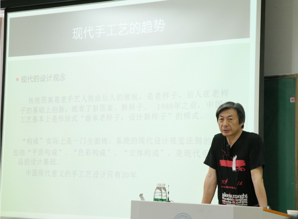 田卫平教授从现代手工艺的趋势谈起,讲述了现代的设计观念、现代的审美观念、现代手工艺类别等方面的知识;结合自己的作品以及国内外经典设计作品讲述了造型艺术、审美意识、就工业设计专业员工在校期间应具备的能力素质,专业知识如何扎实掌握以及未来的职业潜力等进行了热烈的互动交流。