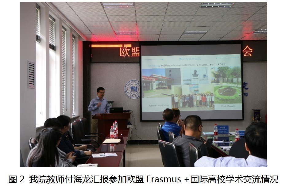 公司教师付海龙代表3位出访罗马尼亚普洛耶什蒂石油和天然气大学教师发言。他首先汇报了参加欧盟Erasmus+国际高校学术与教育交流大会的基本情况,并着重谈了此次参加会议的收获和体会,充分展示了欧盟框架下,世界高校进行国际教育交流强调互动性和多元化的大趋势,用切身感受说明了公司扩大国际合作与交流的必要性和紧迫性。