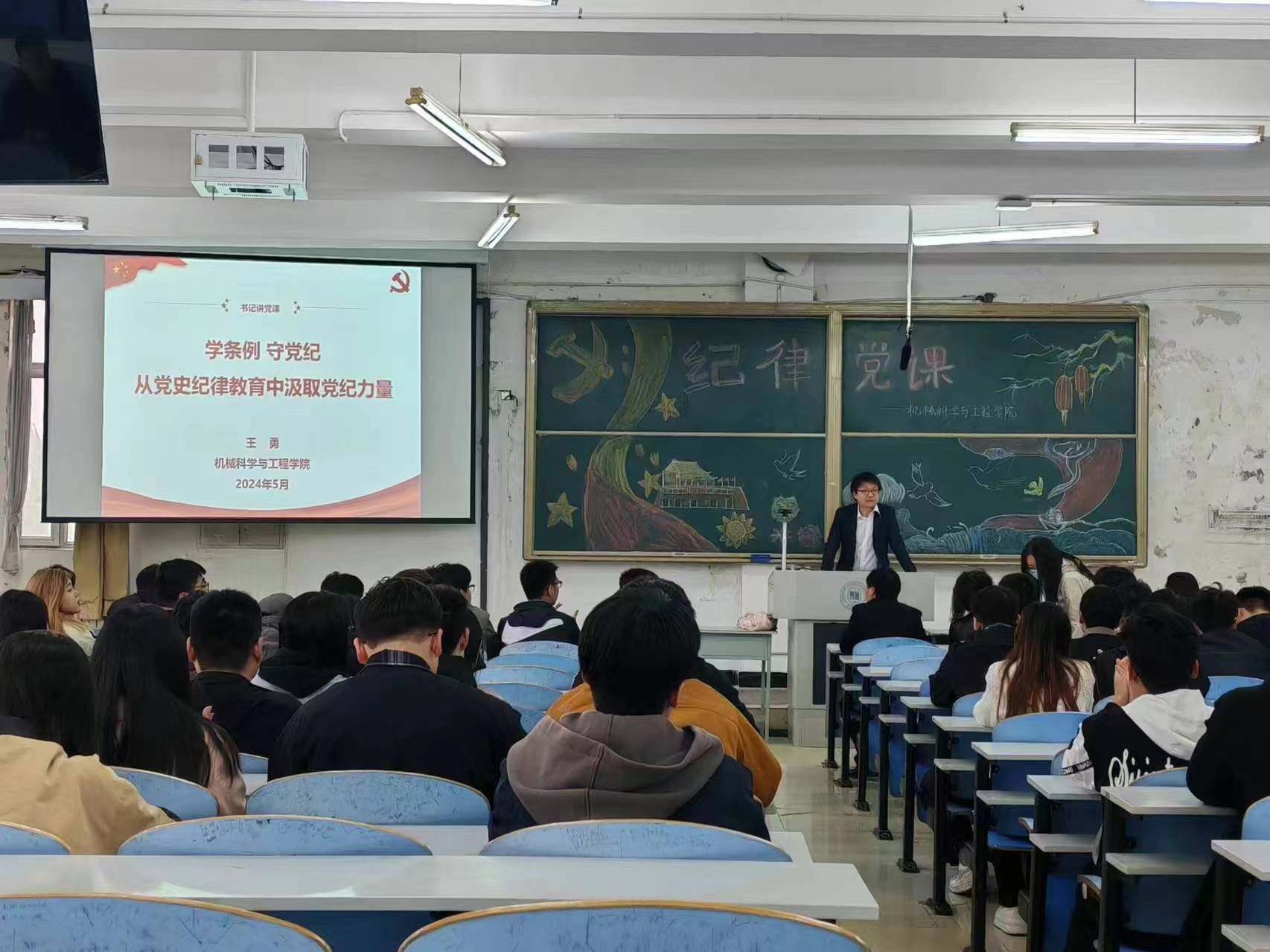 为深入学习贯彻修订后的《中国共产党纪律处分条件》,教育引导党员学纪、知纪、明纪、守纪,推动党纪学习教育入脑入心,2024年5月10日,公司党委书记王勇以“学条例 守党纪----从党史纪律教育中汲取党纪力量”为题,为全院200多名师生党员上了一堂生动的专题党课。专题党课由公司党委副书记、纪委书记闫超主持。