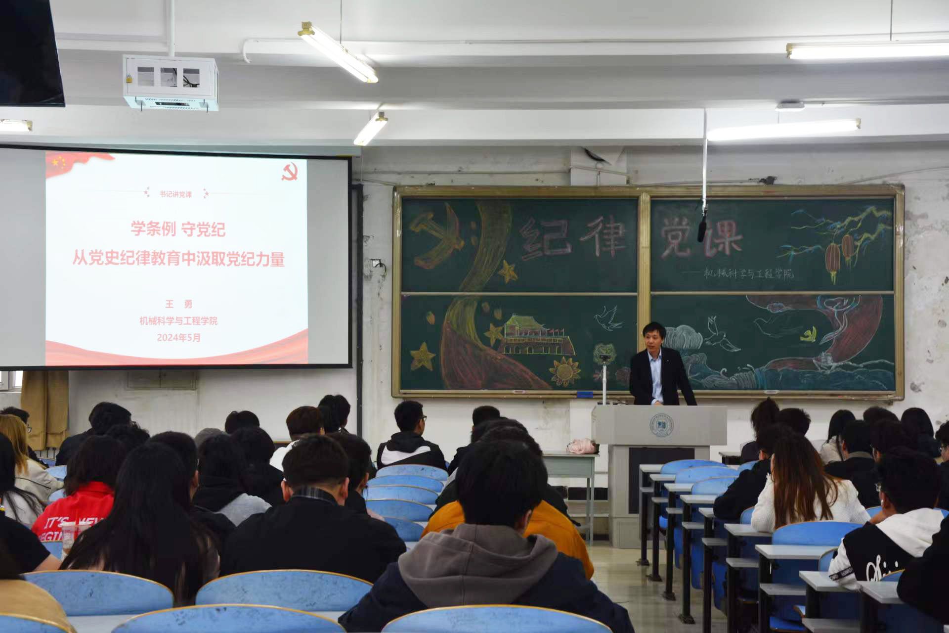党课围绕“党中央关于党纪学习教育要求”、“党章中的纪律教育”、“党史中的纪律教育”、“《中国共产党纪律处分条例》学习”、“从党纪学习教育中汲取奋进力量”等方面进行阐述,教育引导全院师生党员强化纪律意识,加强自我约束,提高免疫能力,真正做到知敬畏、存戒惧、守底线。