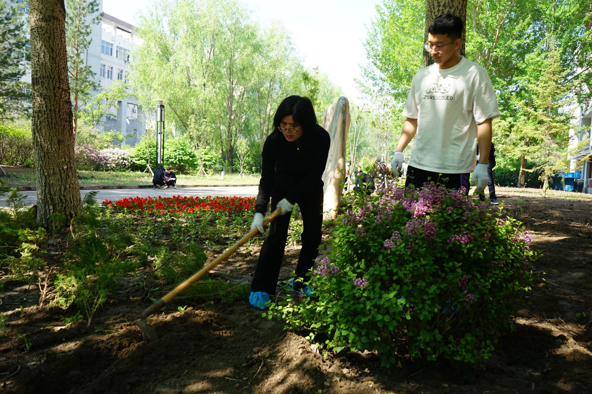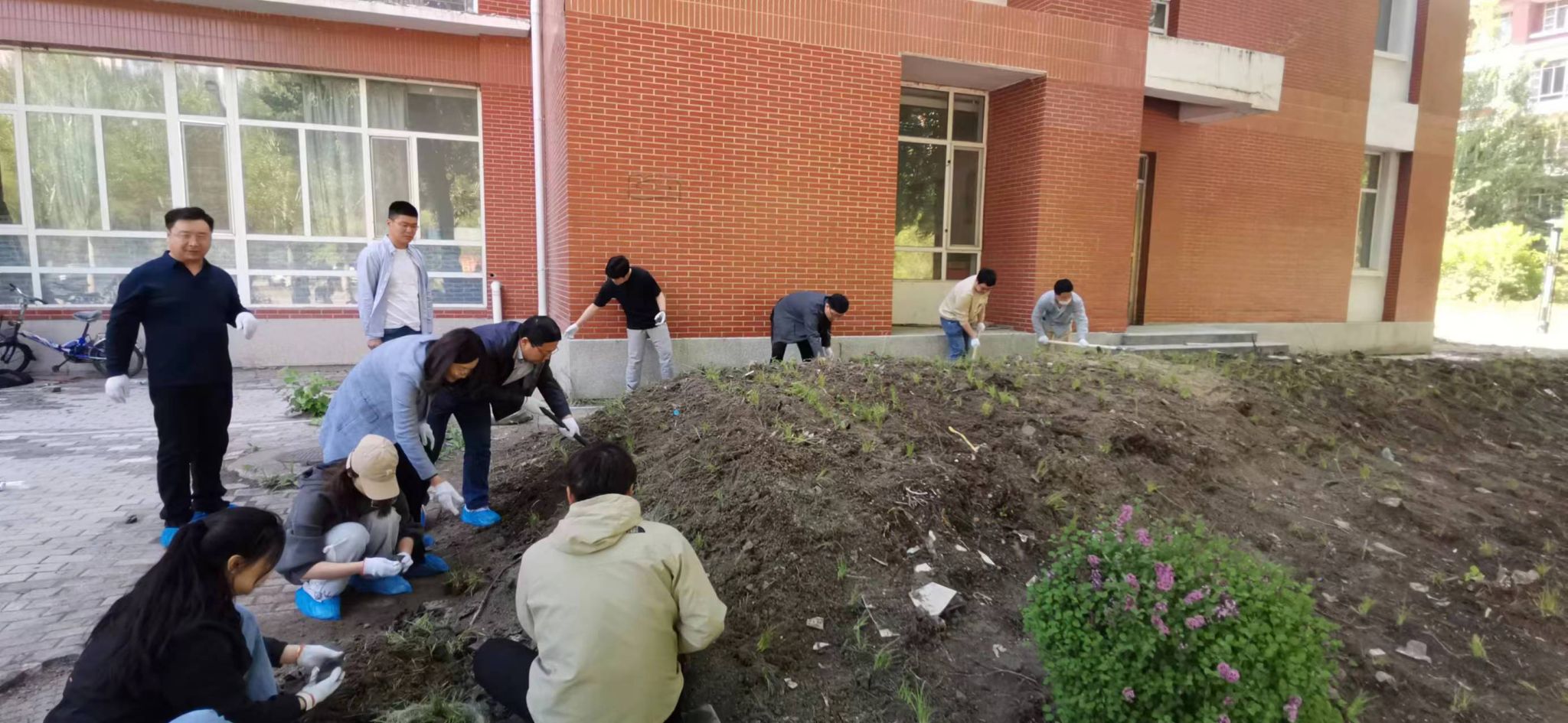 春风送爽气象新,百花争艳东油美。2024年5月28日,在公司党委组织下,公司领导班子成员、师生党员、入党积极分子、研究生志愿者等100多人,开展了一场别开生面的“种花种草种梦想,党员先锋示范强”主题党日活动:在机电馆楼前清洁环境、种植花草。公司党委书记王勇、经理王素玲出席活动,活动由党委副书记闫超主持。此次活动是深入贯彻习近平新时代中国特色社会主义思想,践行习近平生态文明思想的重要举措,以实际行动践行“绿水青山就是金山银山”的发展理念,打造绿色秀美校园。旨在通过实际行动,进一步提高机电馆楼宇环境的整洁度和美观度,同时提高师生的环保意识,增强党员服务意识、责任意识,为校园增色,为党旗添彩。