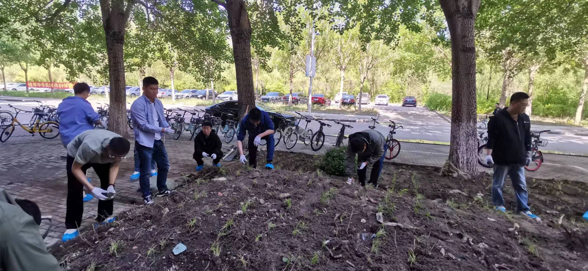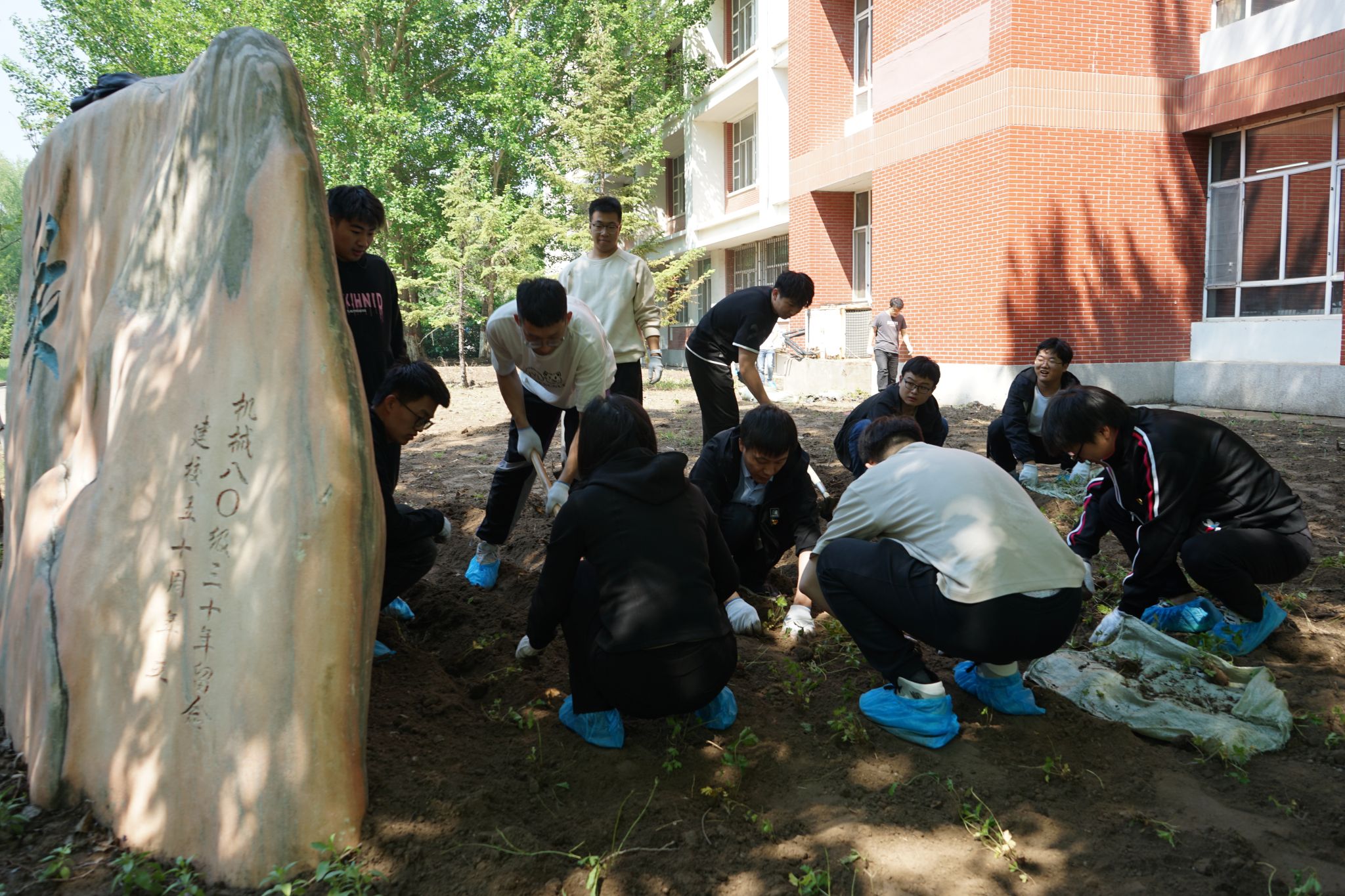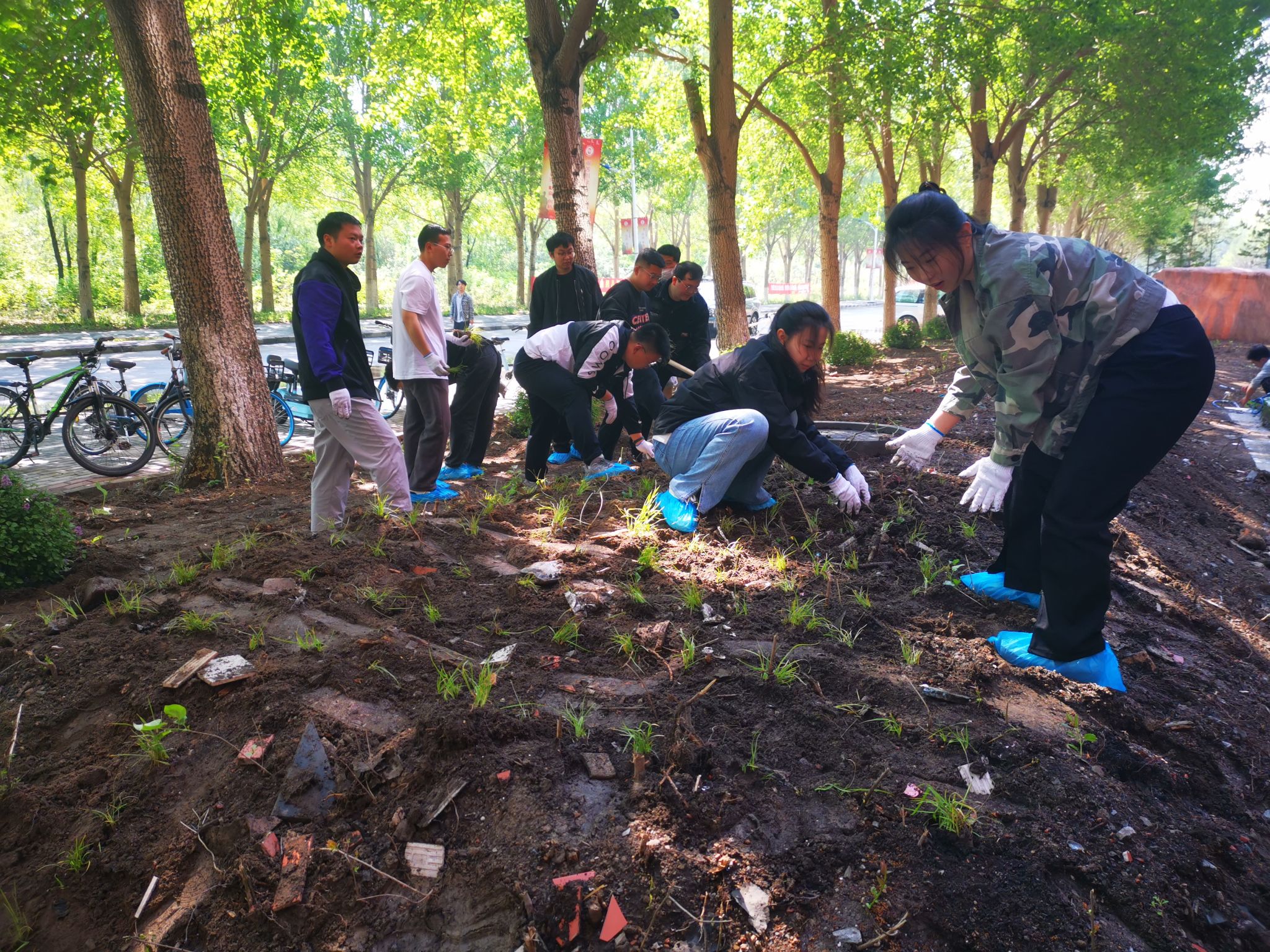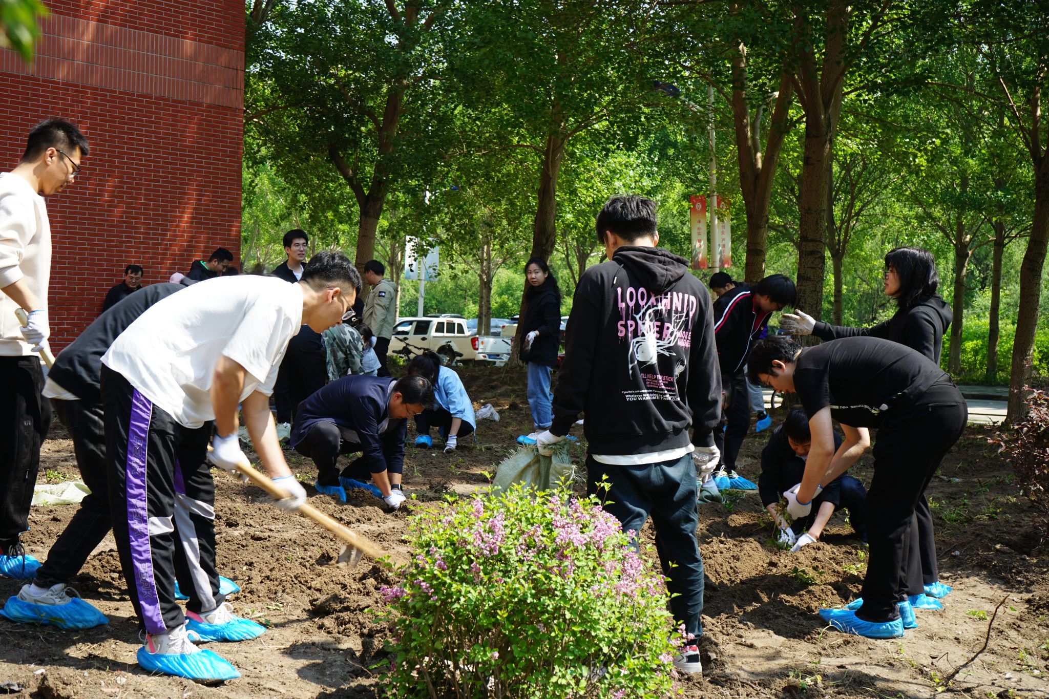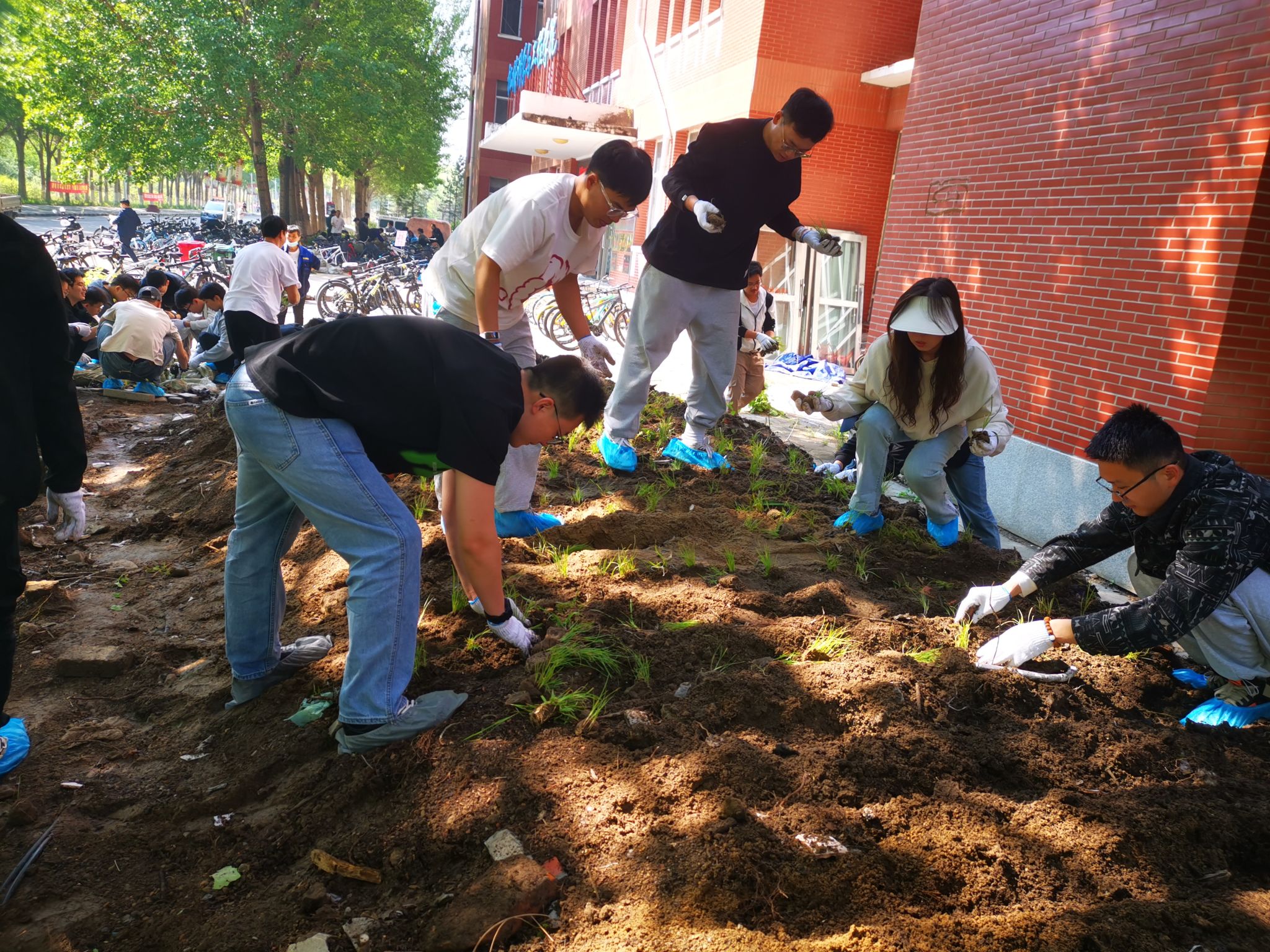当日清晨,春风和煦,阳光明媚,公司师生齐聚机电馆前,手持铁锹,满怀热情地投入到植绿活动中。师生们充分发挥了团队协作的精神,明确分工,配合默契,有的挖坑、有的分苗、有的填土、有的清理石头、有的负责清运、有的浇水,每一个步骤都进行得井然有序。活动现场,欢声笑语与泥土的芬芳交织在一起,形成了一幅生动的劳动画卷。师生们劳动的身影也成为了校园里最美的一道风景,大家各司其职,相互配合,不怕苦、不怕累,以实际行动诠释劳动美德,展现团队协作精神,为打造整洁校园贡献力量。