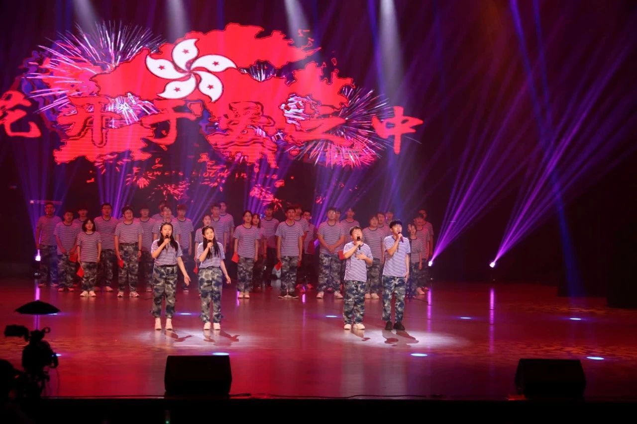 将各省比做星星,中华便是群星汇聚。大合唱《紫荆花盛开》表达香港是中华的一颗亮星。