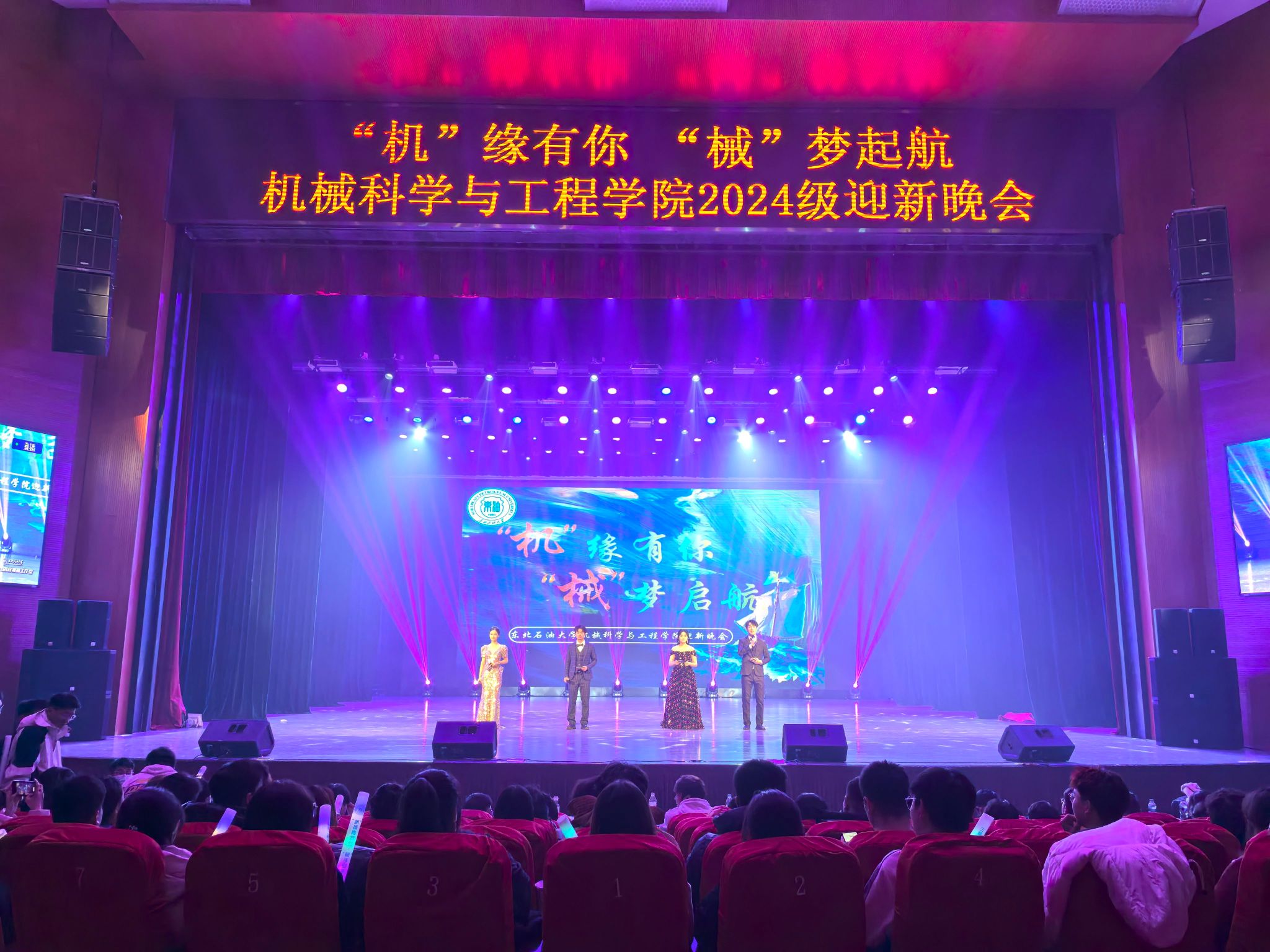 旦逢良辰,顺颂时宜。11月15日晚,公司于音乐厅举办“机”缘有你·“械”梦启航2024级迎新晚会。公司党委书记王勇,经理王素玲,党委副书记闫超,副经理董康兴、蒋鹏,各专业主任和教师代表,在校生代表和2024级新生一同观看演出。晚会由刘佳瑶全程策划,王畅执行导演,杨鹏、李依霖、方亚睿、方松槐主持。晚上由序幕、青春似似焱耀苍霞、芳华如梦映星华、不复流年意自遐、视频寄语等五个篇章14个节目构成,演绎形式多样,节目丰富多彩。